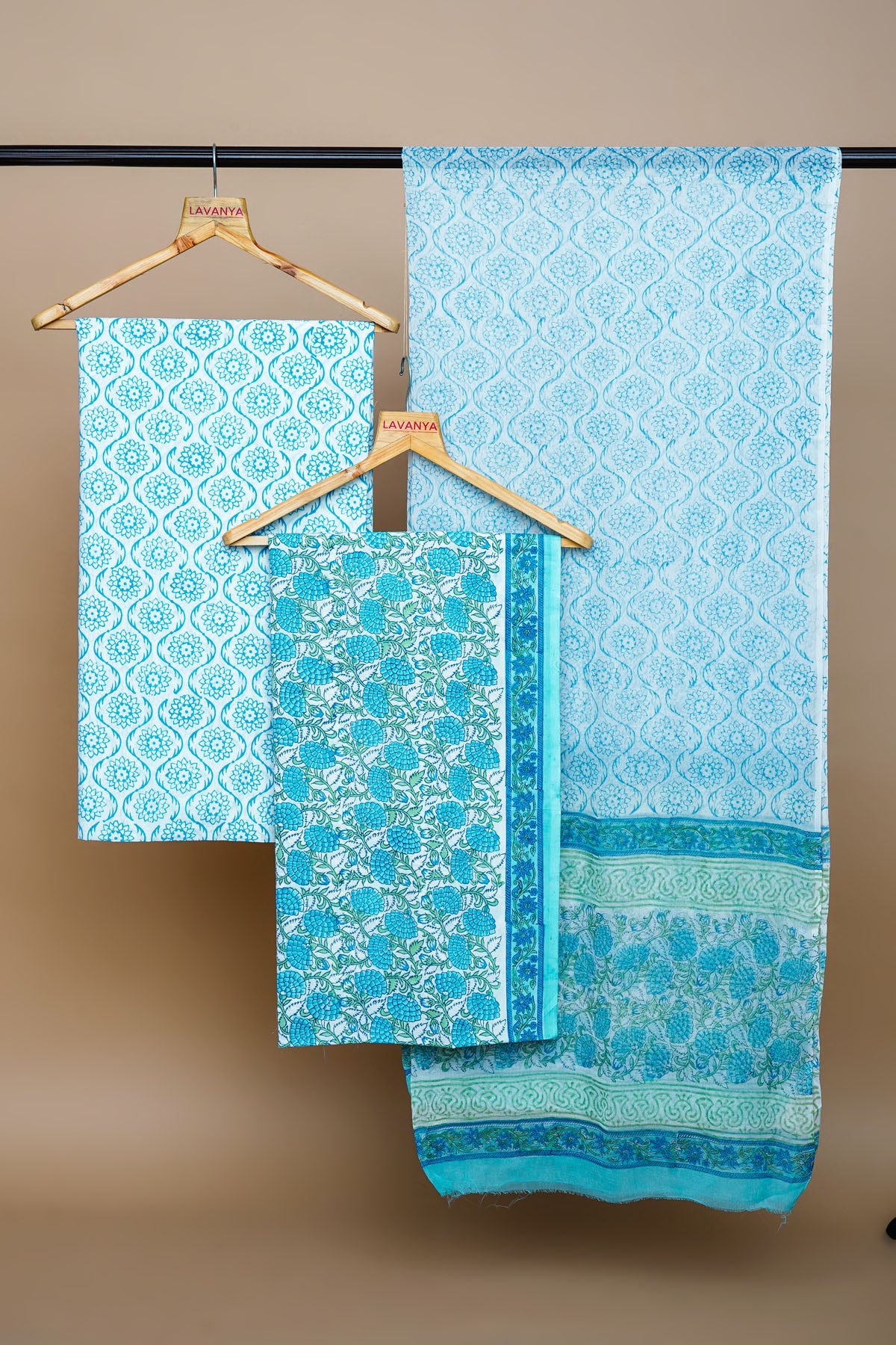 Blue Block Printed Suit with Chiffon Dupatta