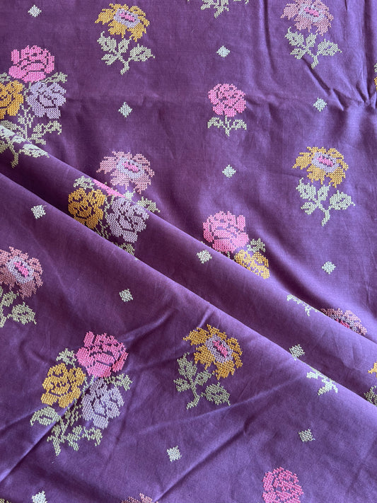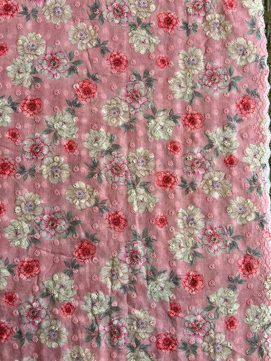 Pink Cotton Embroidered Fabric with Floral Print