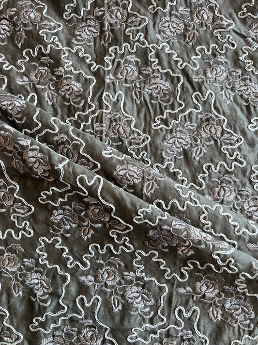 Grey Emboidered Silk Chanderi Fabric
