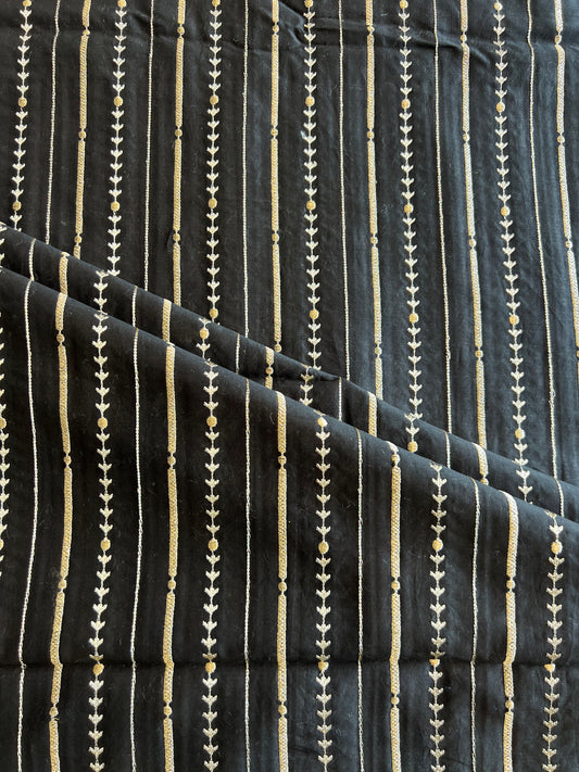 Black Zari Embroidered Silk Chanderi Fabric