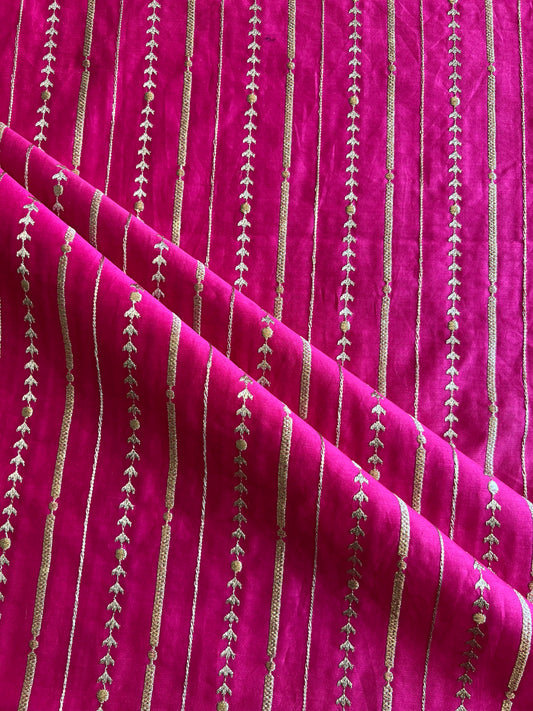 Rani Pink Zari Embroidered Silk Chanderi Fabric