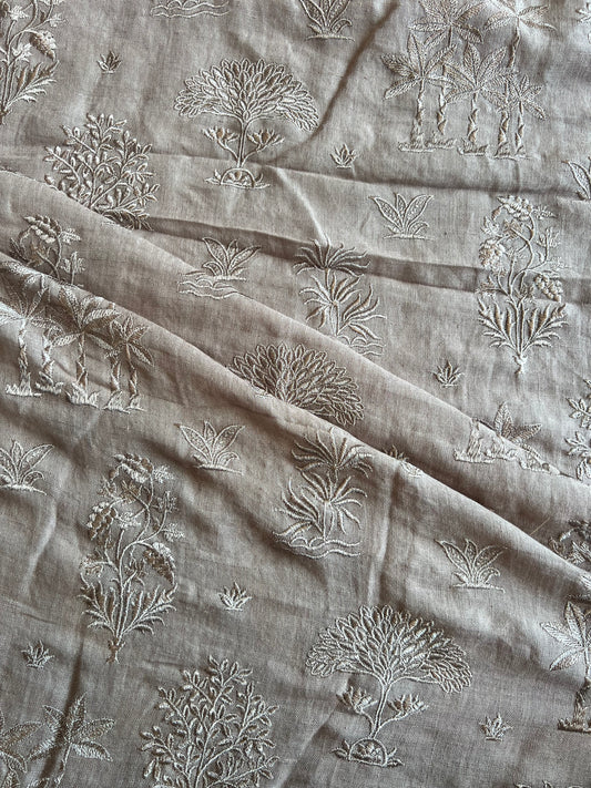 Almond Colour Pure Gauze Linen Embroidered Fabric