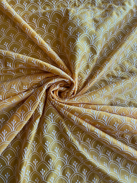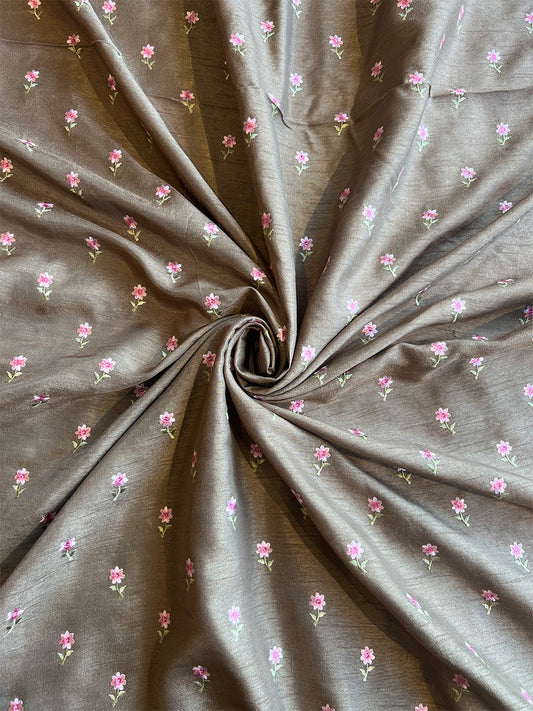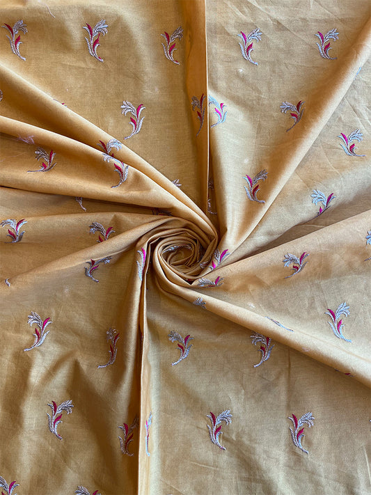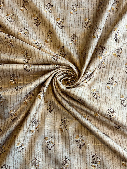 Beige Self Print with Embroidered Buti Khaadi Chanderi Fabric