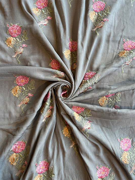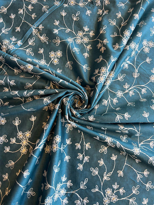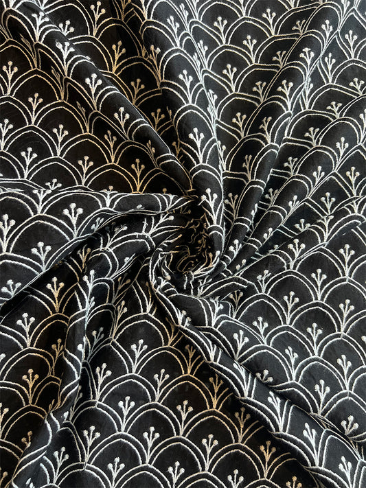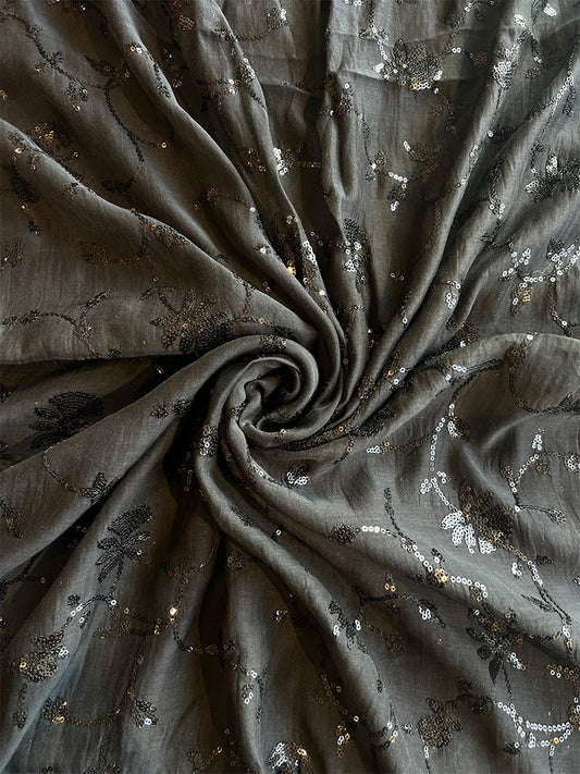 Black Colour Mul Chanderi with Sequence Work Embroidered Fabric
