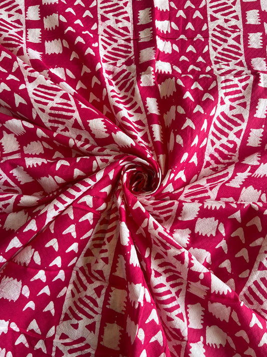 Rani Pink Geometrical Printed Self Weaved Cotton Fabric