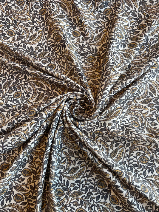 Beige Floral Jaal Printed Cotton Spun Fabric