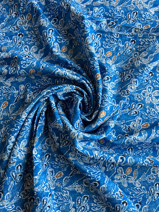 Royal Blue Batik Printed Cotton Spun Fabric