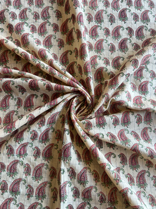 Pink Floral Buti Block Printed Cotton Fabric
