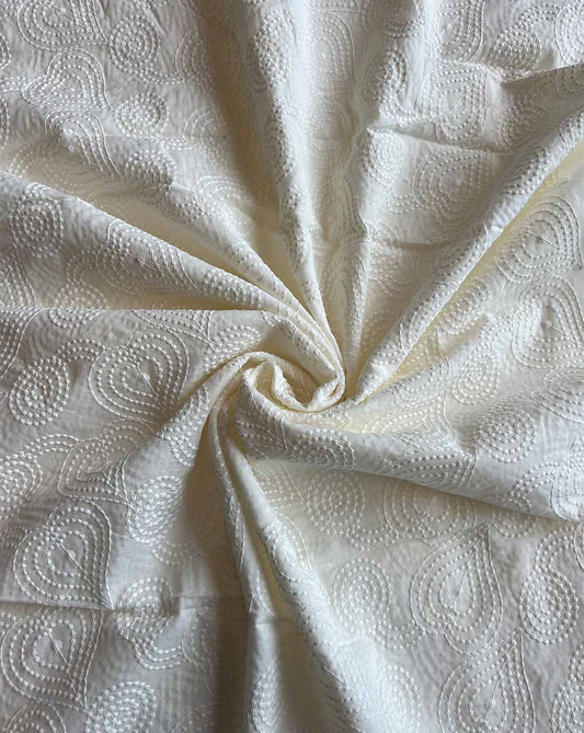 Cream Embroidered Cotton Fabric