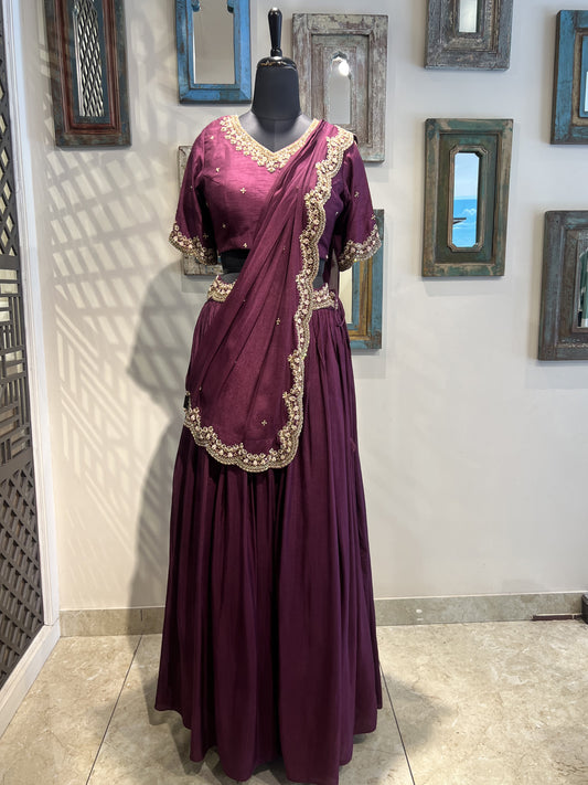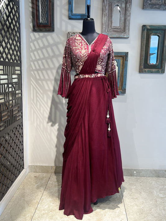 Maroon Lehanga with Drape