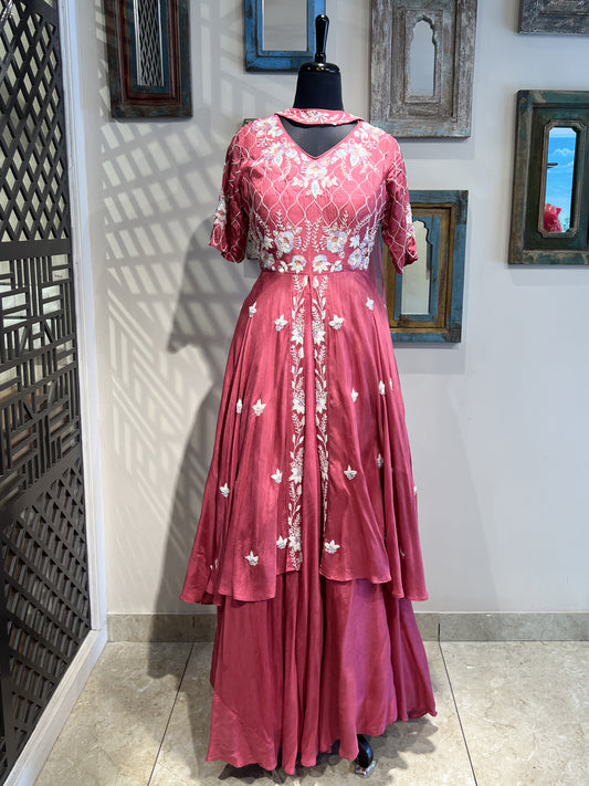 Peach Hand Work Indo Western