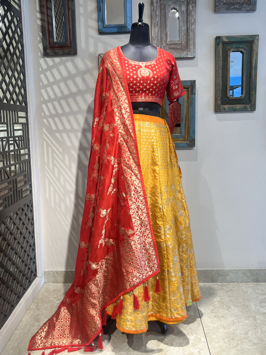 Yellow Banarsi Weaved Lehanga