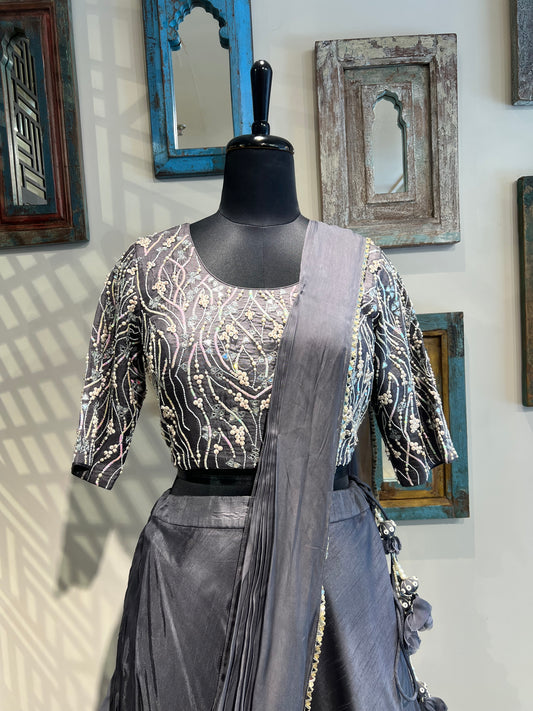 SaleGrey Drape Lehanga