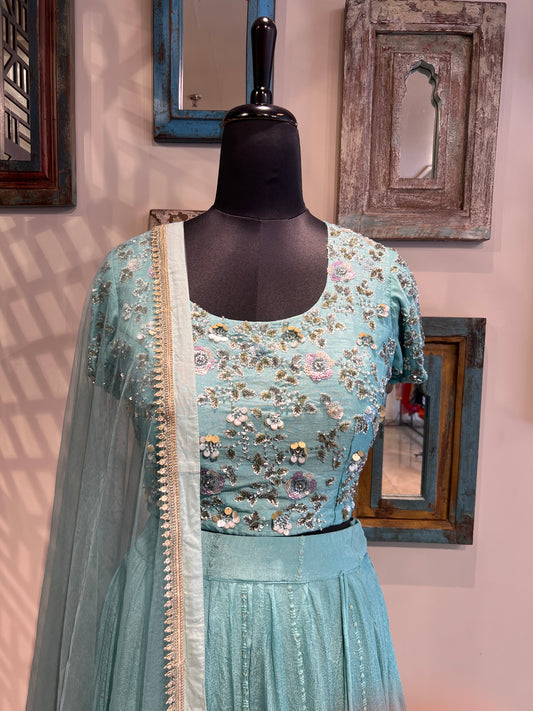 Blue Sequence Work Lehanga