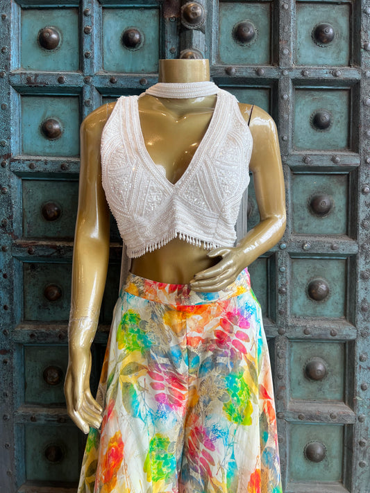 Printed Palazzo with Hand Work Sleeveless Blouse