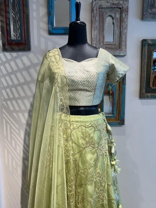 Green Hand Work Lehanga