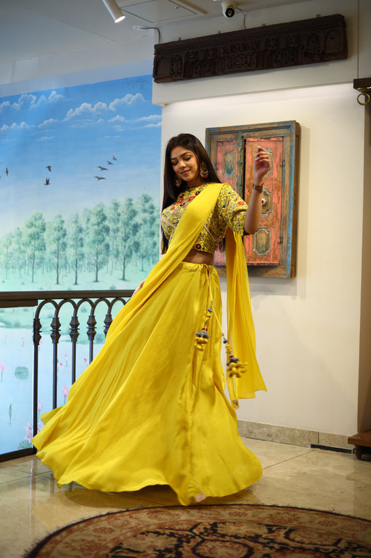 SaleYellow Drape Lehanga