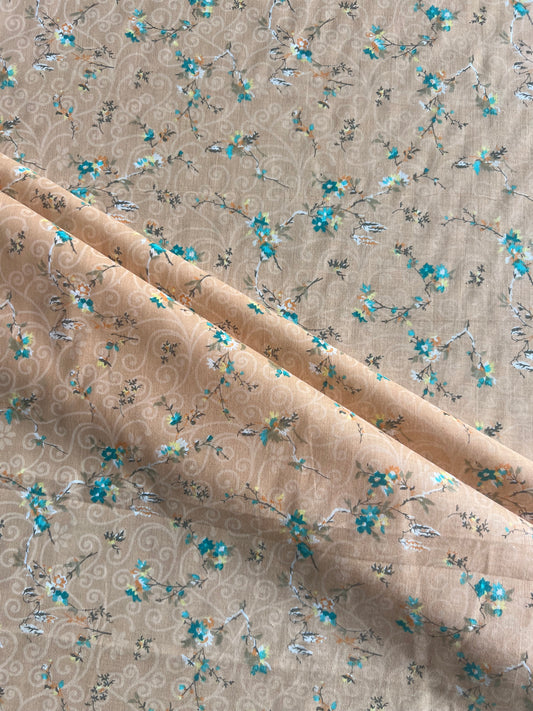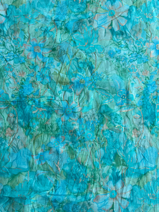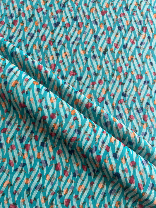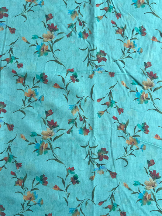 Sky Blue Multi Colour Floral Printed Cotton Fabric