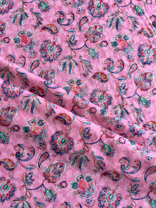 Rama Blue Floral Printed Jacquard Cotton Fabric