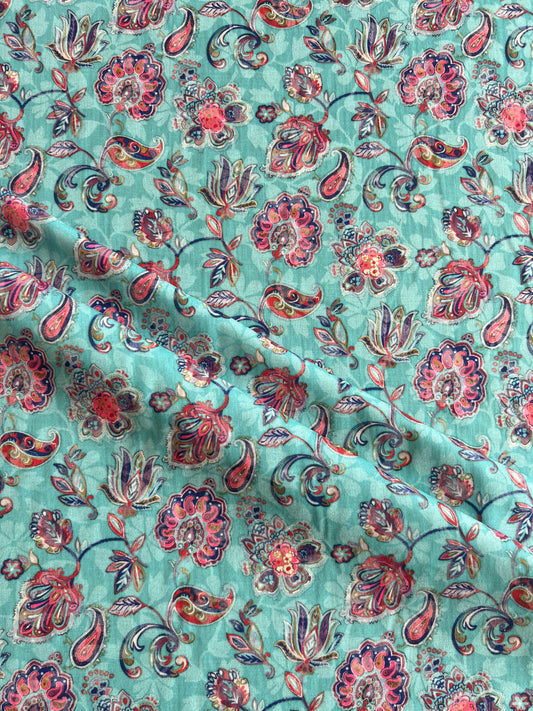 Rama Green Multi Colour Floral Printed Cotton Fabric