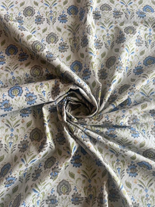 Rama Blue Geometrical Printed Self Weaved Cotton Fabric