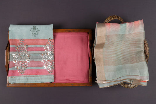 Lime Gota Work Suit Set with contrast Bhandani Dupatta