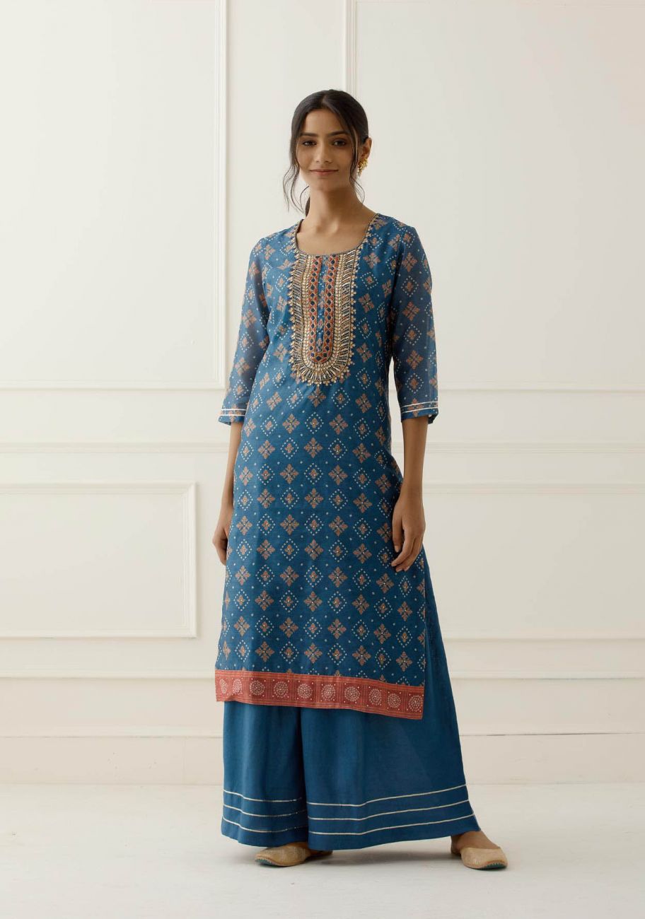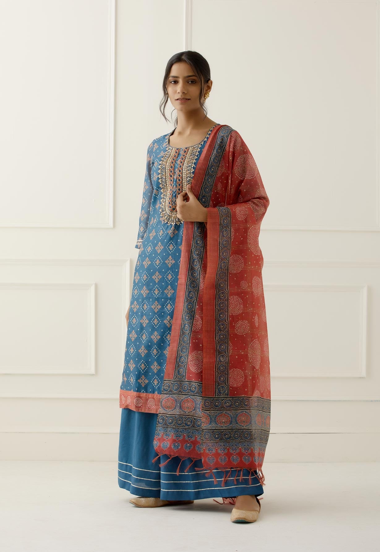 Blue Sequence and Gota Work Suit Set with contrast Bhandani Dupatta