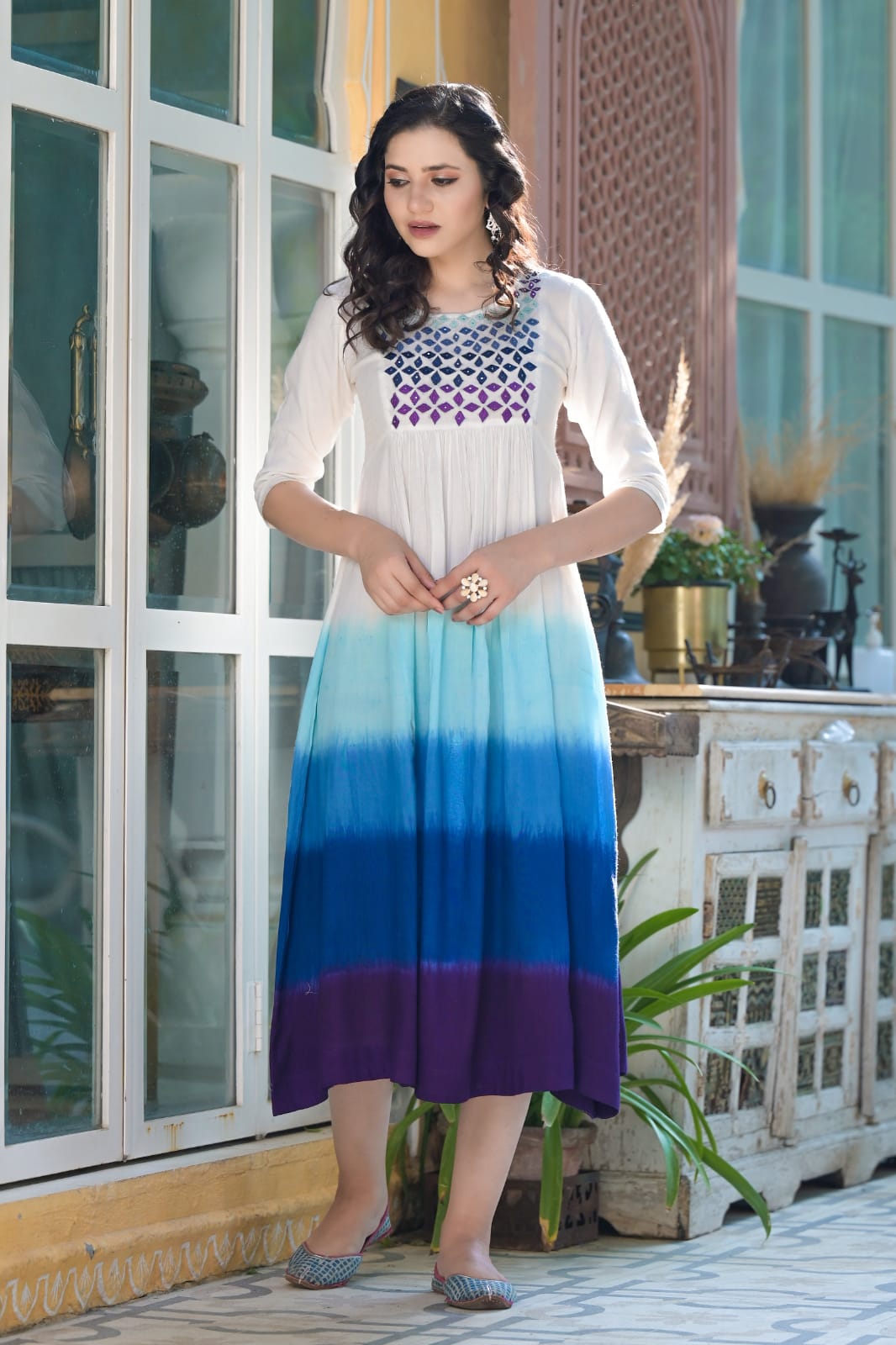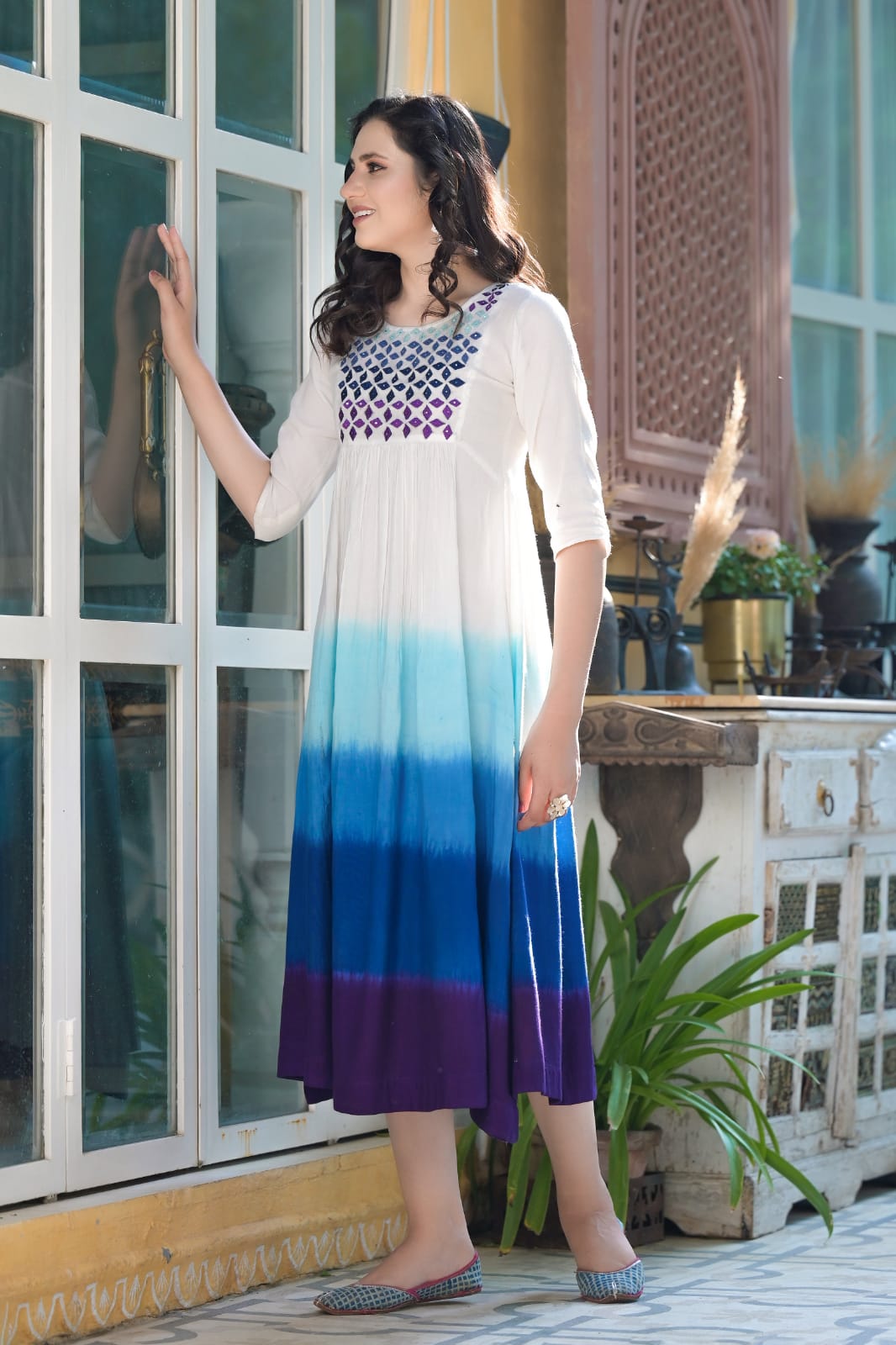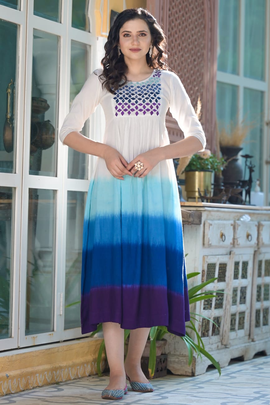 Cotton Multi Colour Dress with Mirror Work