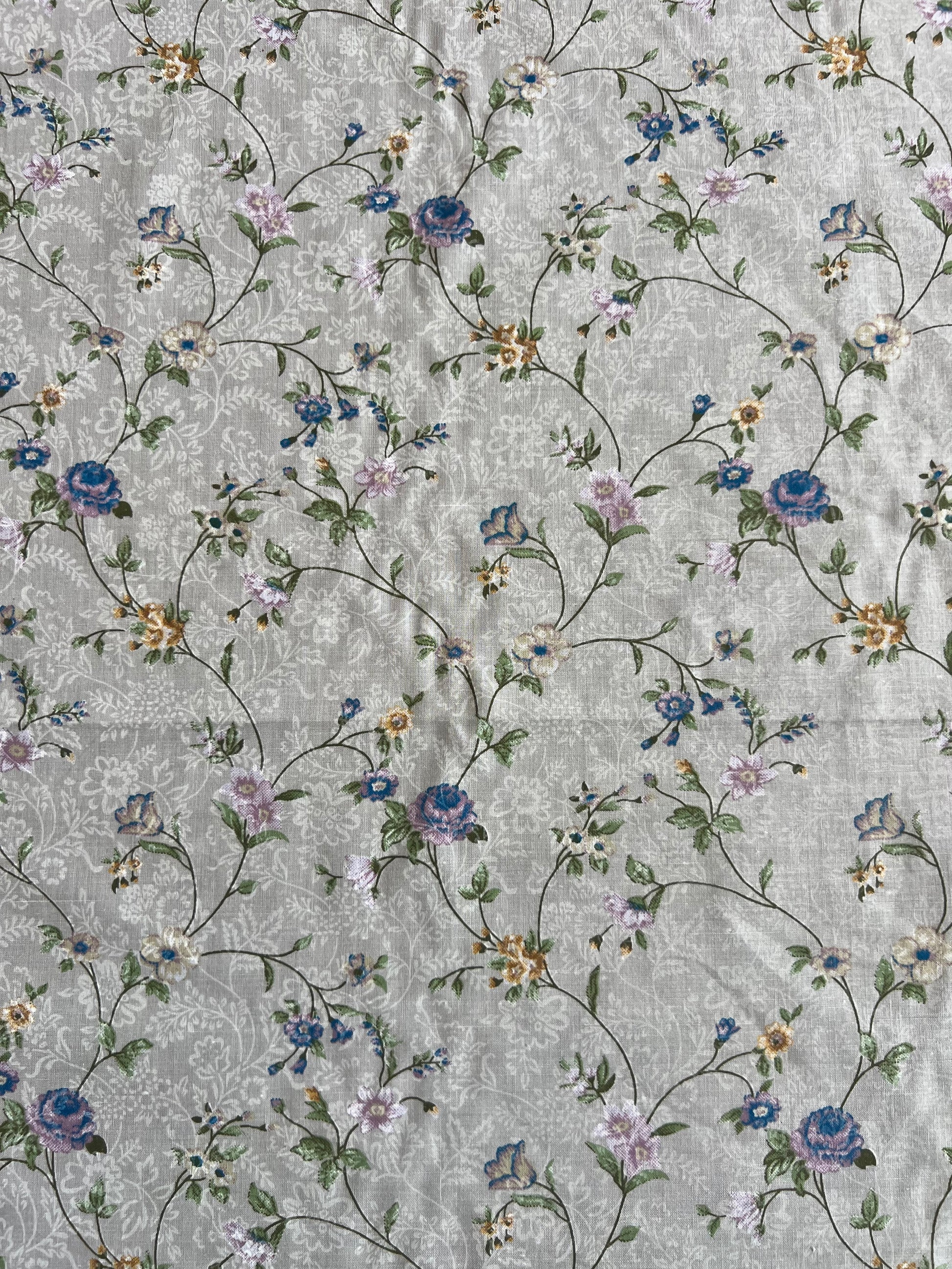 Grey Floral Printed Cotton Fabric