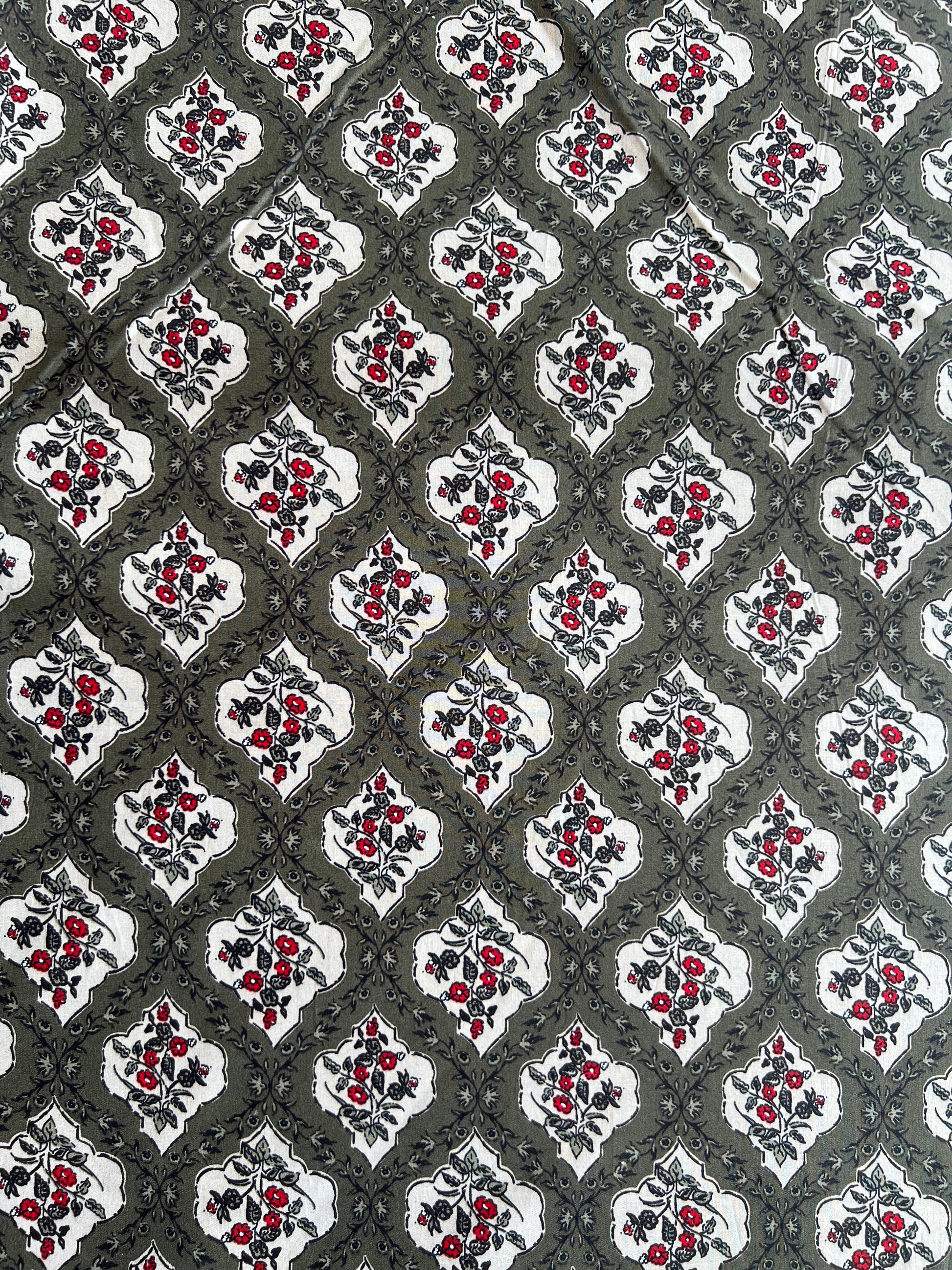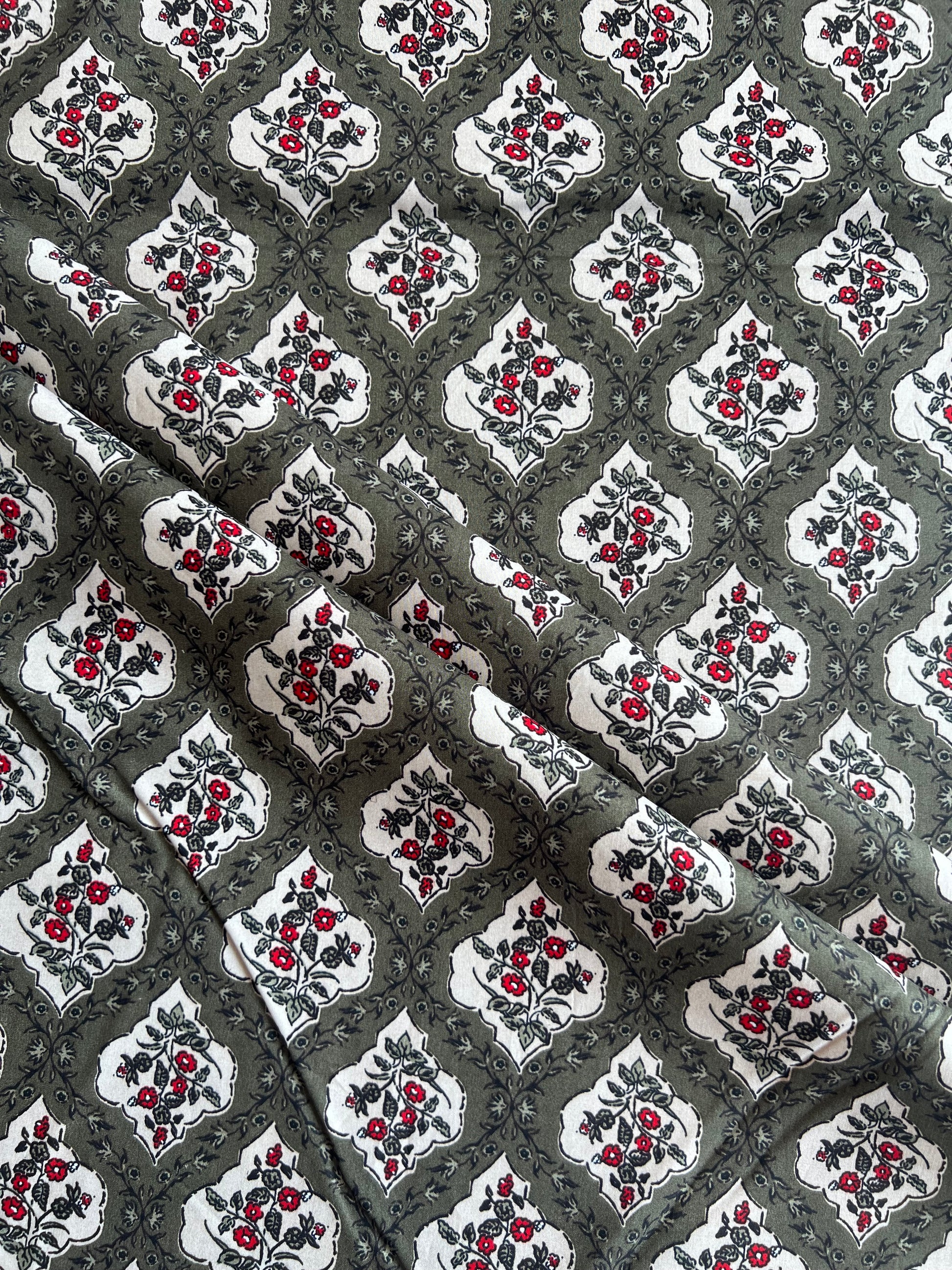 Grey Floral Printed Cotton Fabric