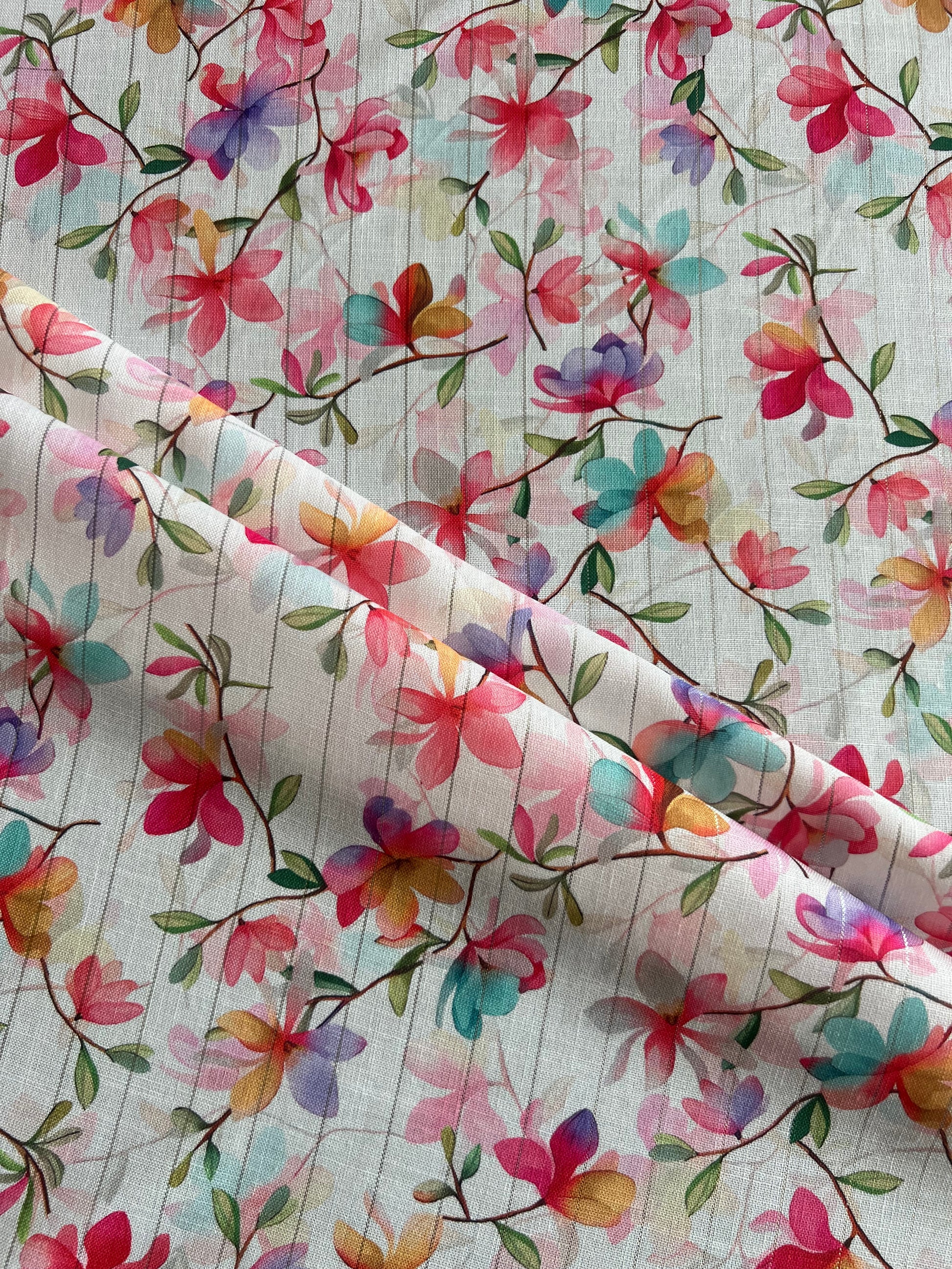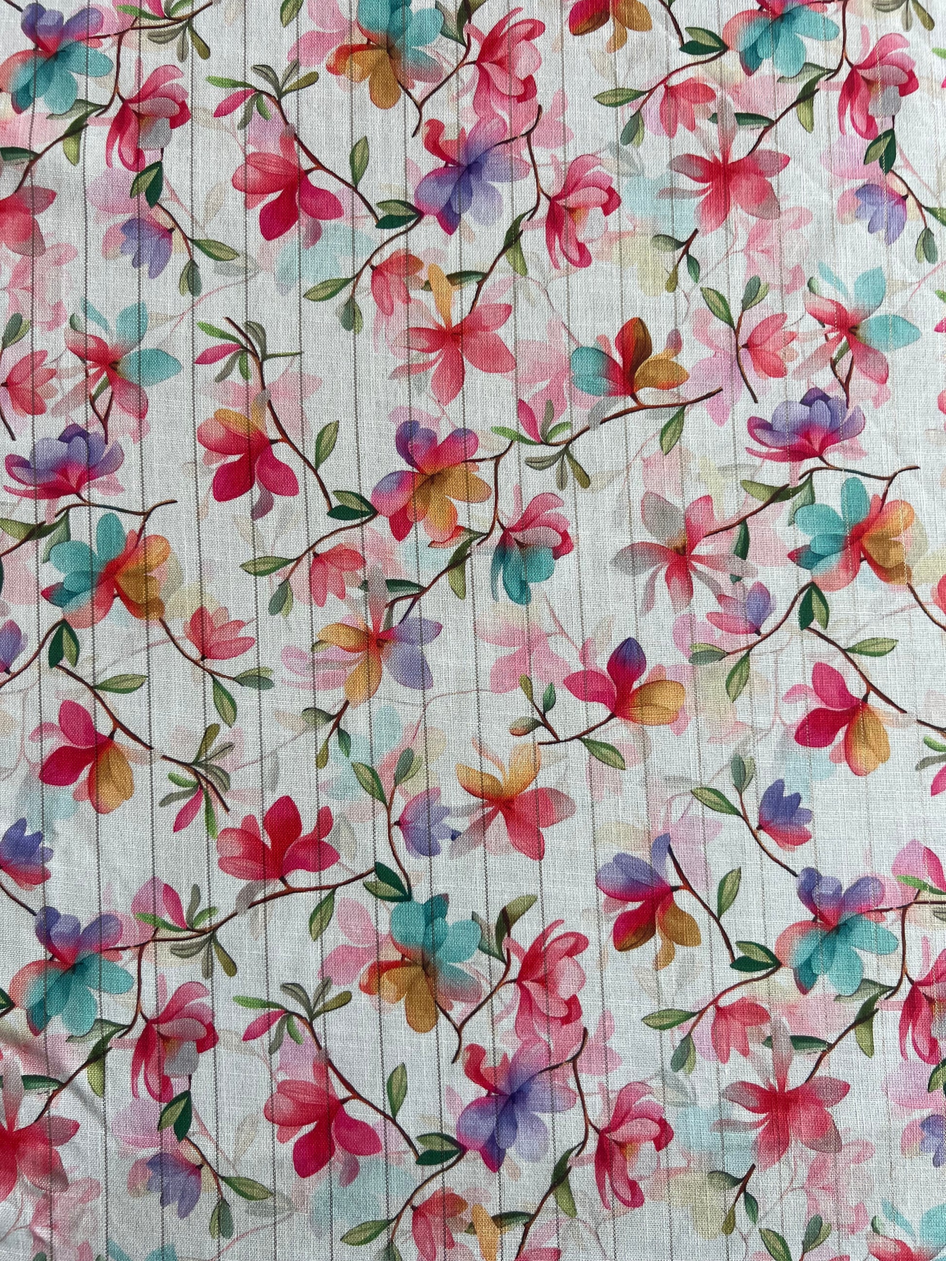Multi Colour Floral Printed Self Weaved Lurex Cotton Fabric