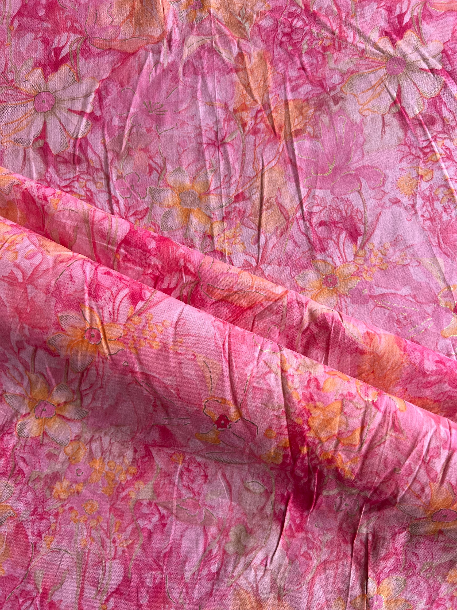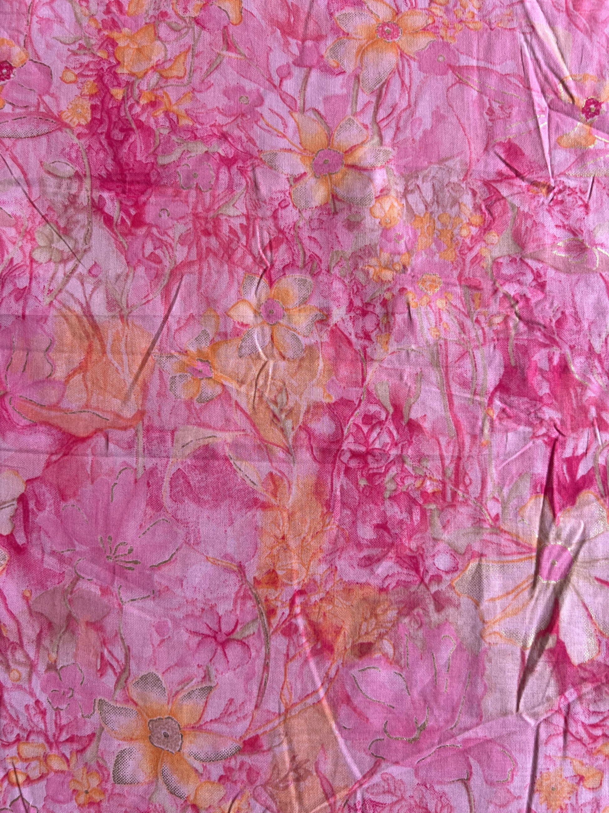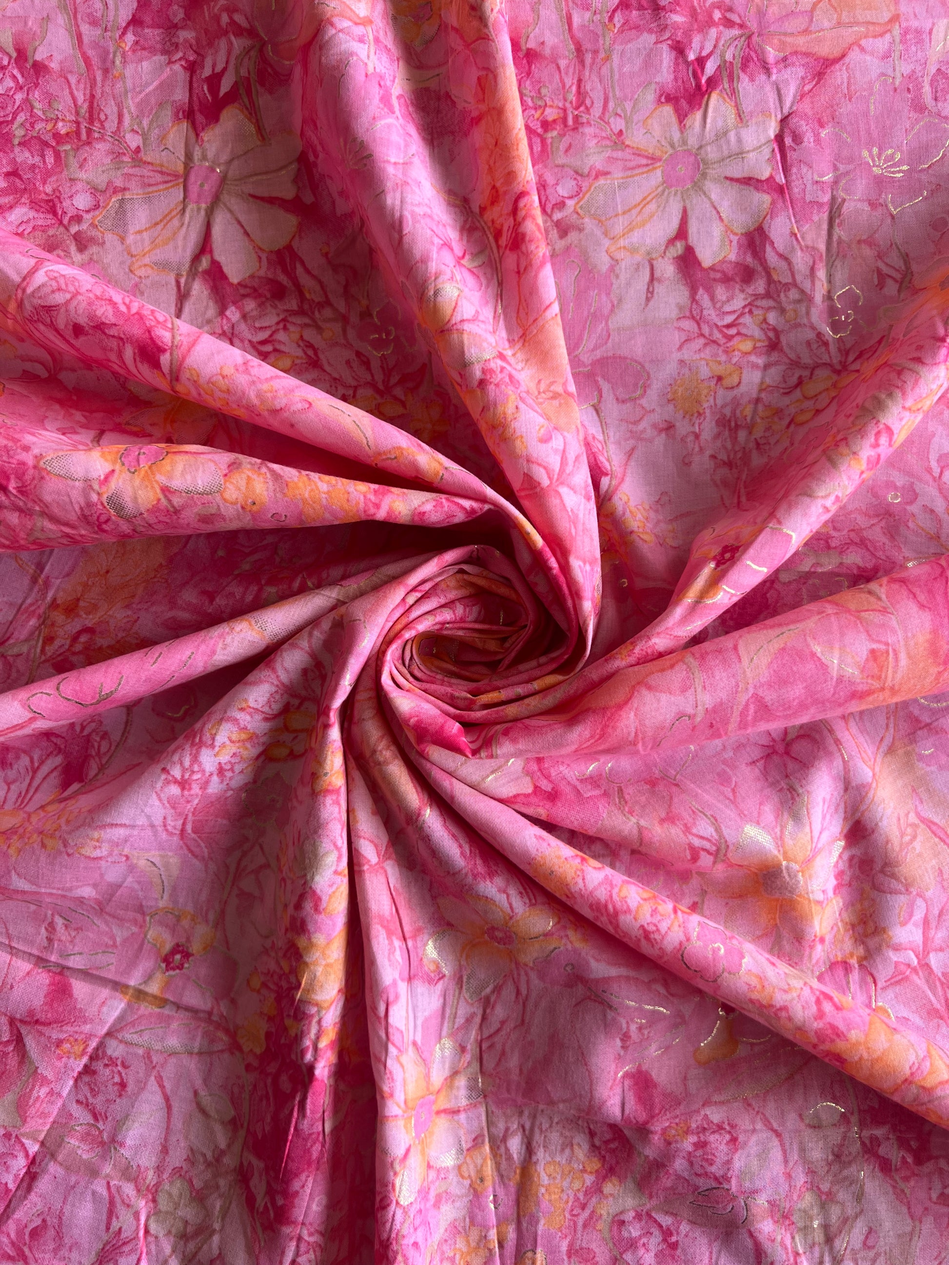 Pink Gold Self Printed Cotton Fabric