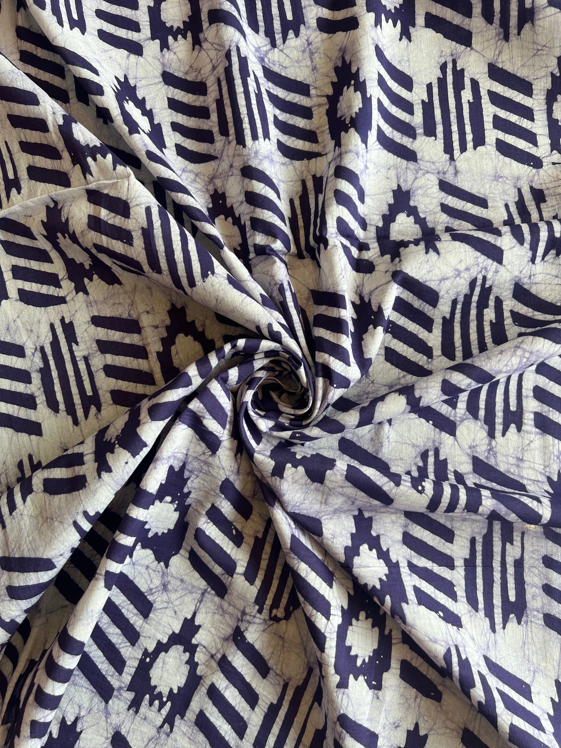 Purple Geometrical Batik Printed Cotton Fabric