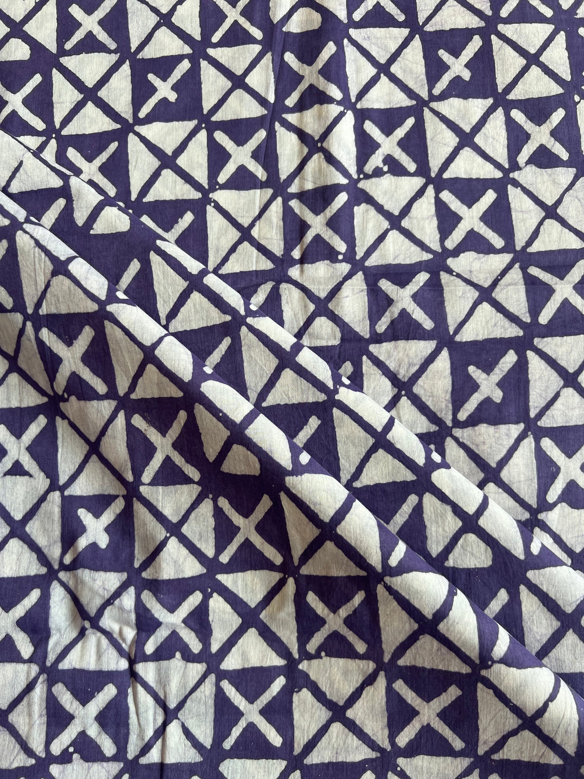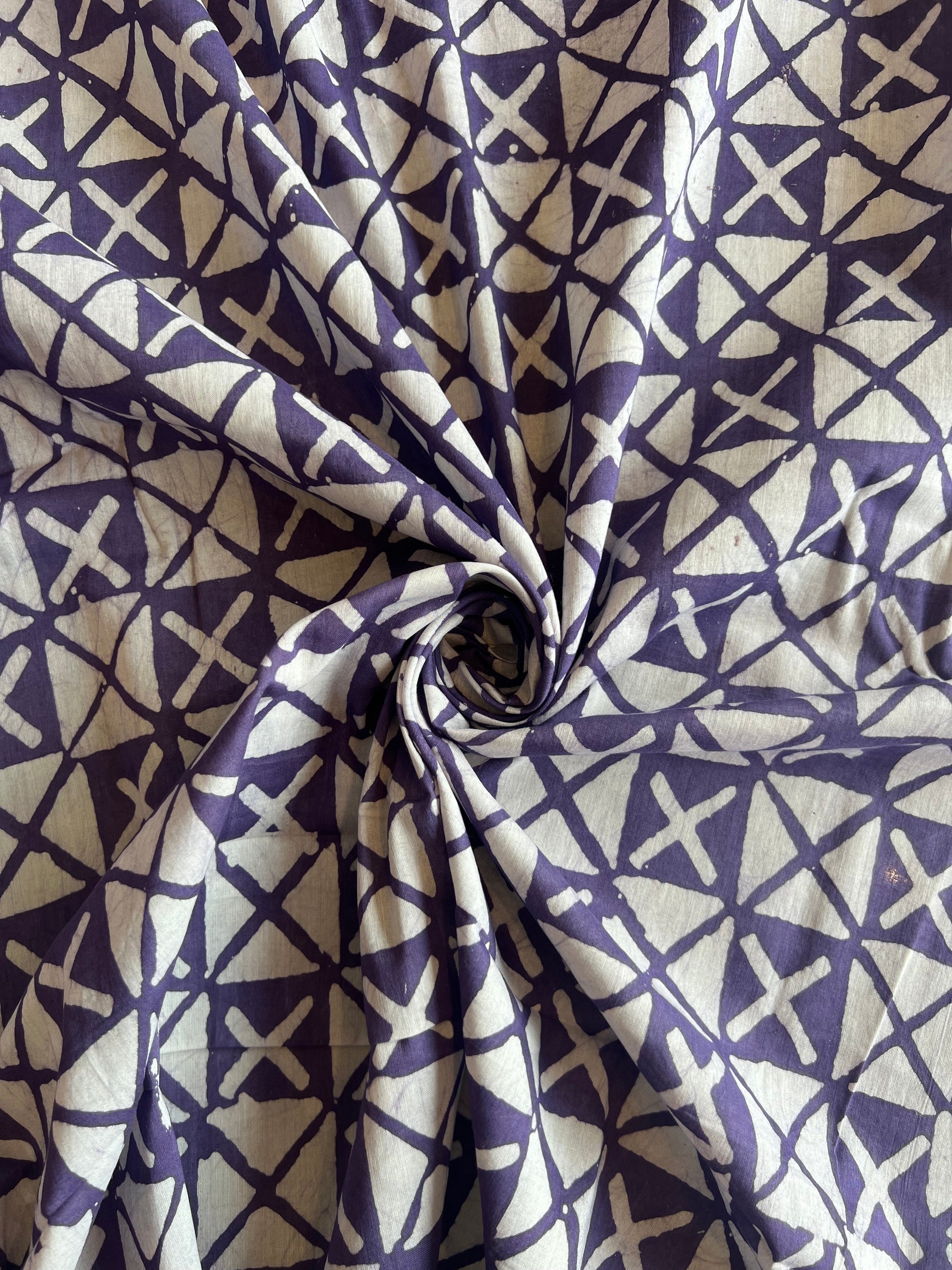 Purple Geometrical Batik Printed Cotton Fabric