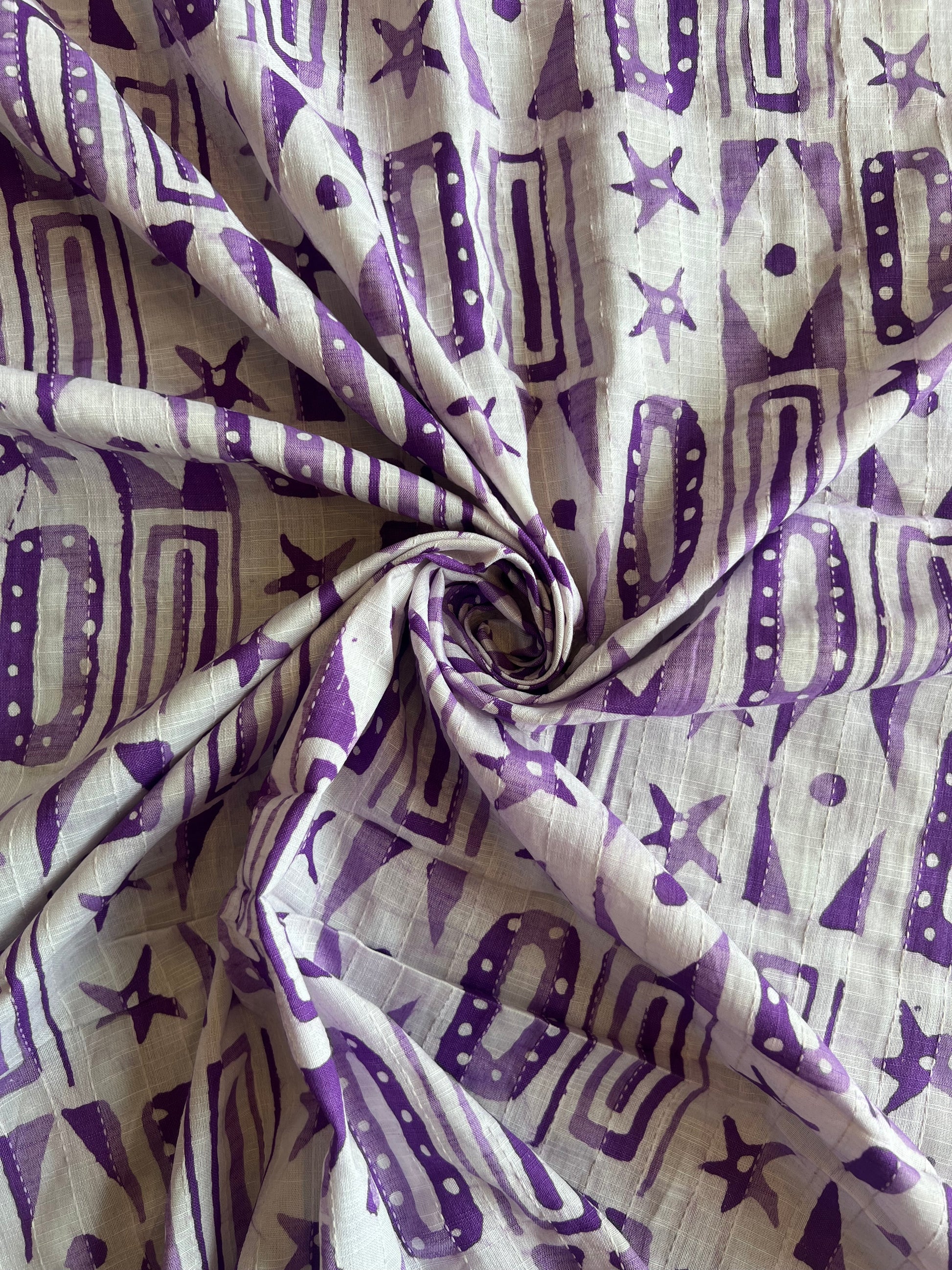 Purple Geometrical Printed Self Weaved Cotton Fabric