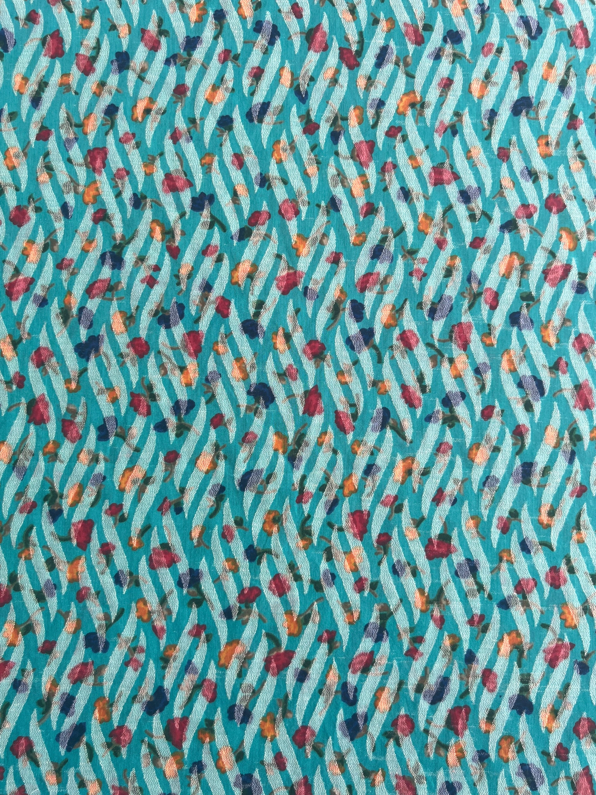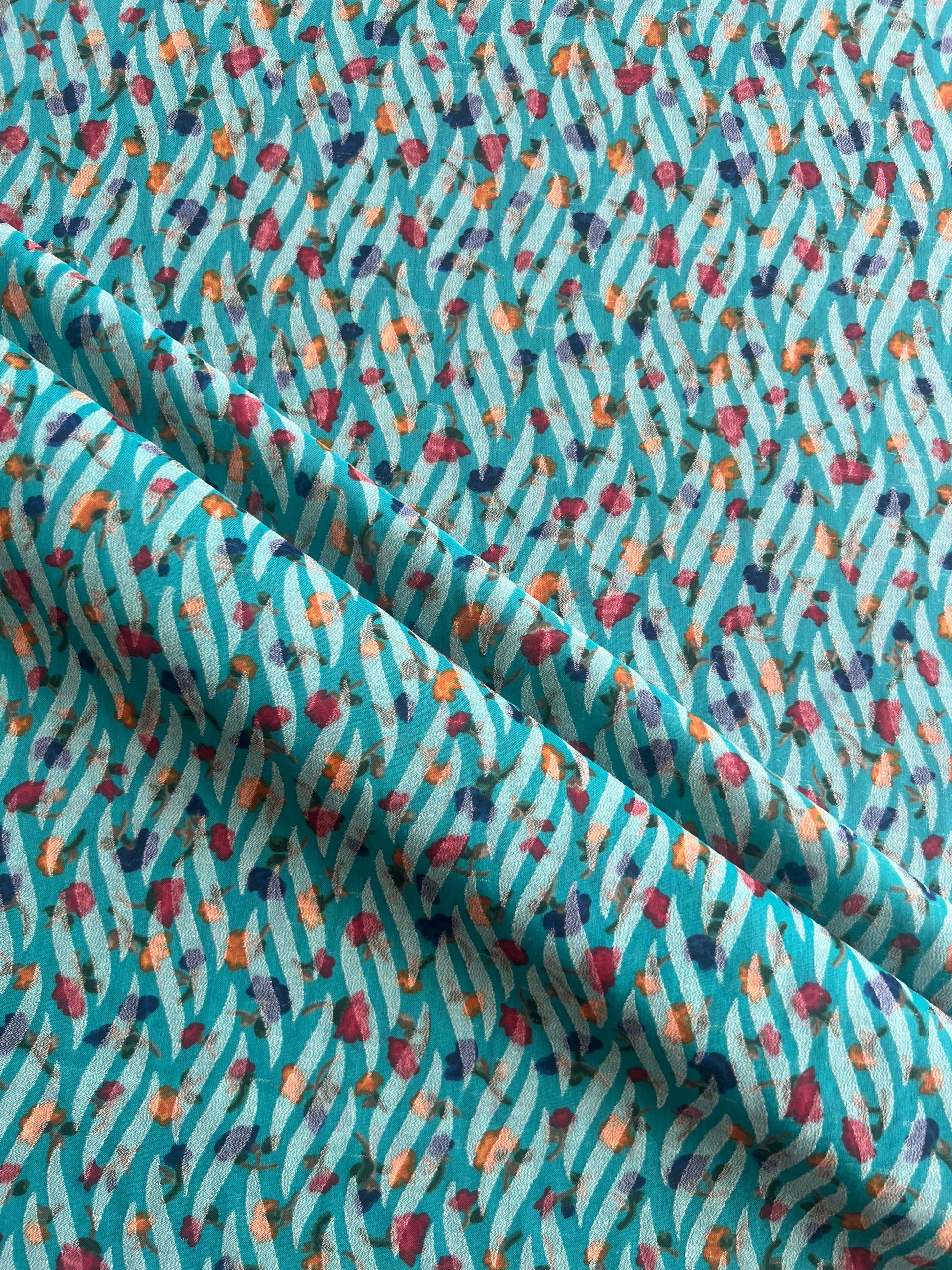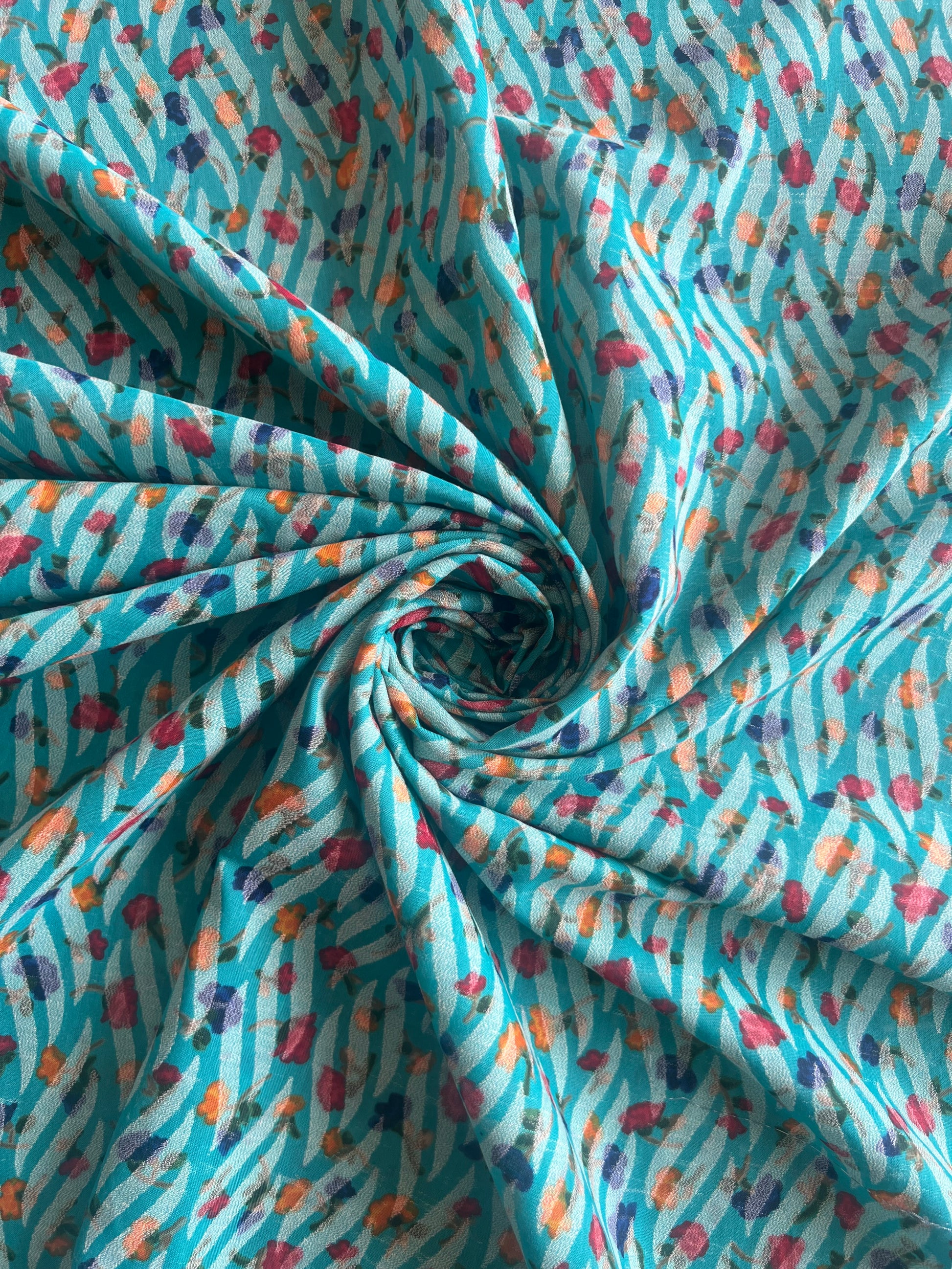 Rama Blue Floral Printed Jacquard Cotton Fabric