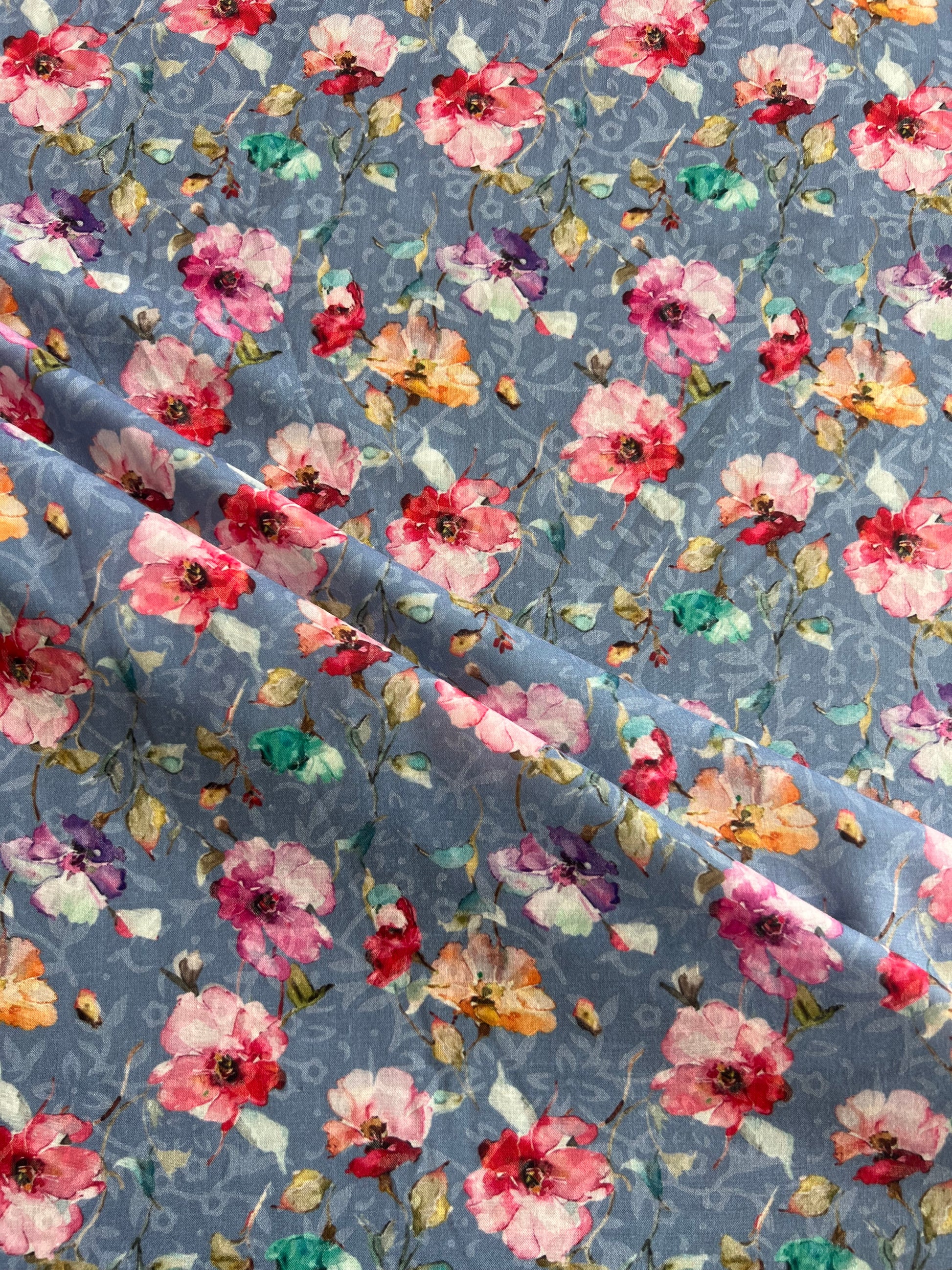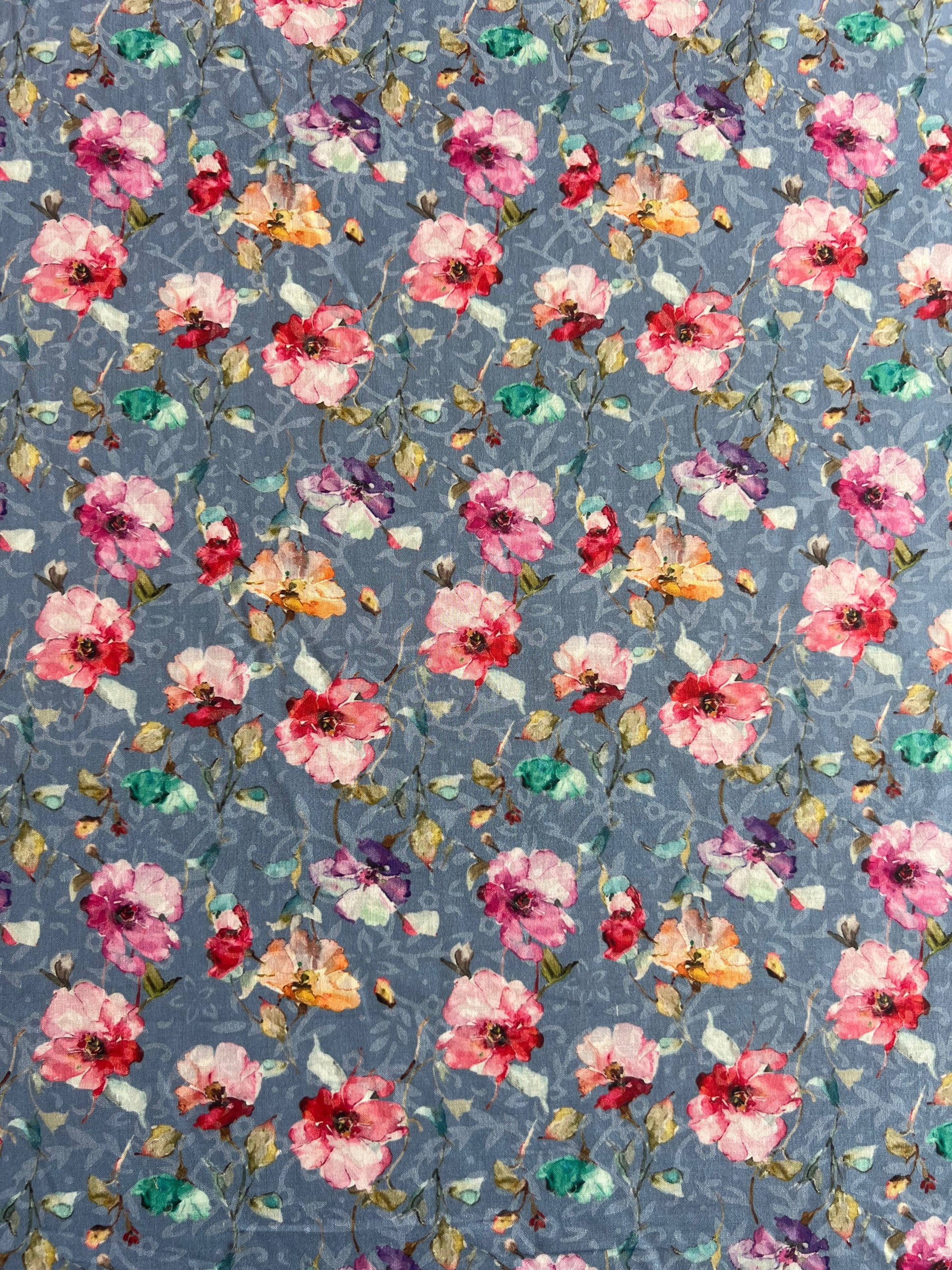 Sky Blue Multi Colour Floral Printed Cotton Fabric