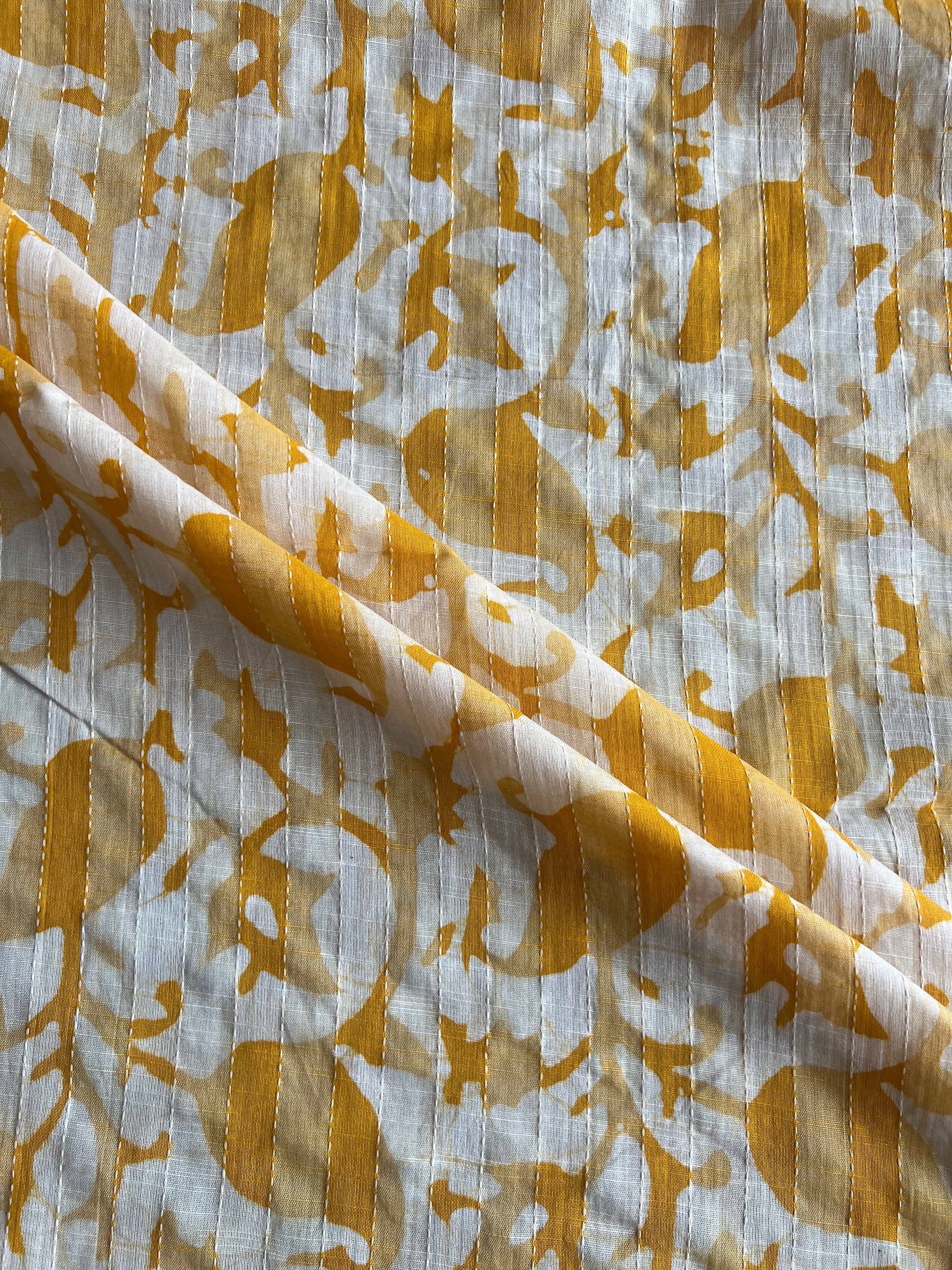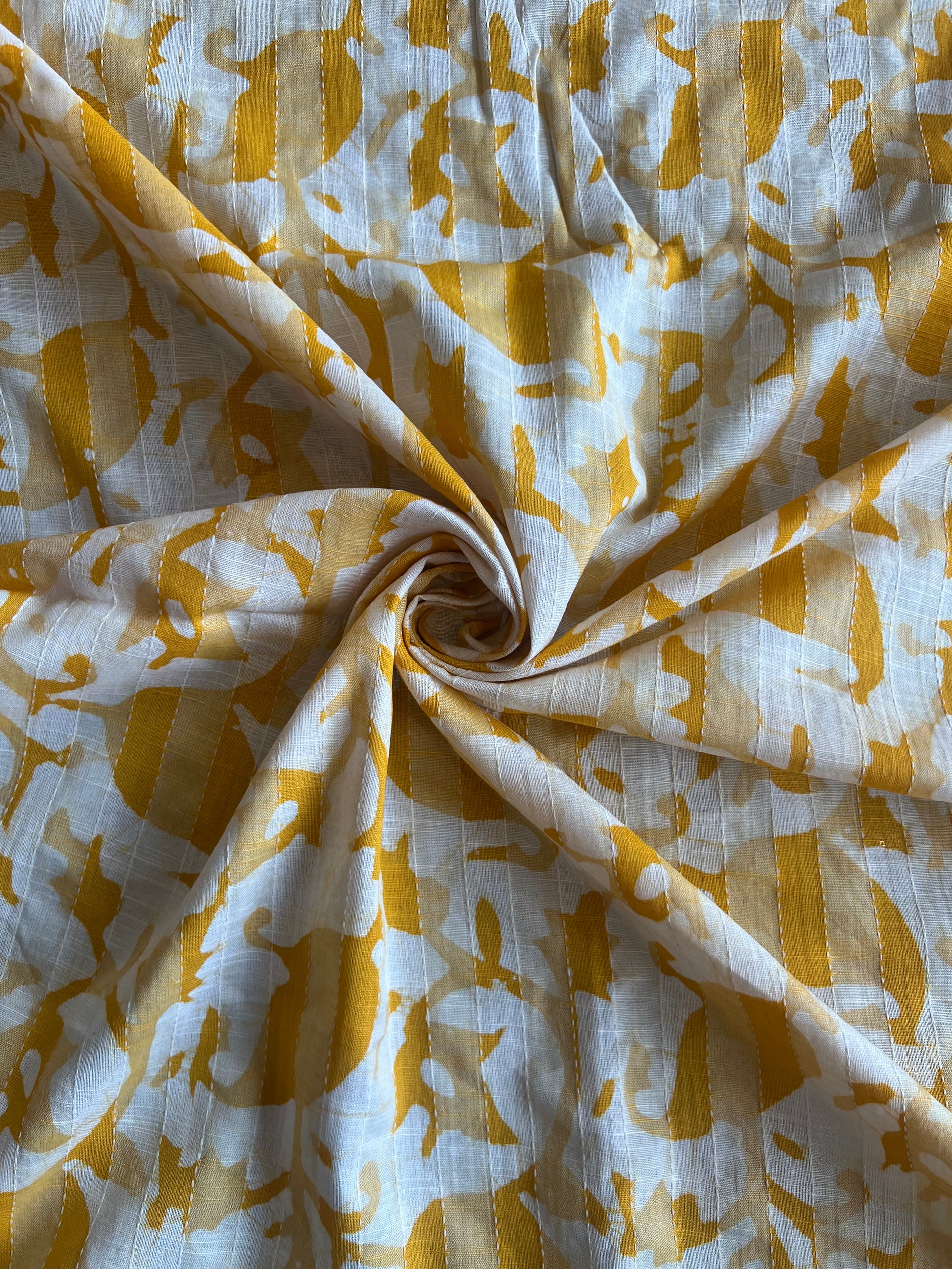 Yellow Paisley Batik Printed Weaved Cotton Fabric